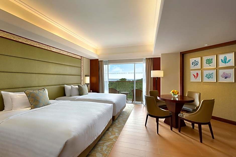 Offers uninterrupted views of the Mactan Channel and nearby islands. The suite provides a private balcony, a separate living and dining area and a marble private bathroom with a bathtub and separate shower facilities. It also comes with an in room DVD player.